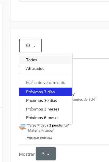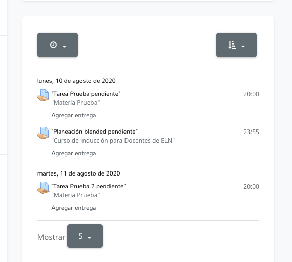 - Esta misma zona cuenta con diferentes opciones para filtrar por fecha de vencimiento. De esta forma podrás organizar de mejor forma tus entregas.